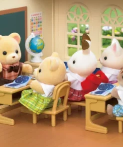 • Incluye: unidad principal; tronco de entrada; valla x3; plataforma; pupitre x2; silla x6; atril profesor; tablón de anuncios; banco; libros x6; cuaderno x12; libro profesor; borrador pizarra; bola del mundo; telescopio. Un total de 35 accesorios.