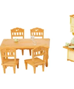 • Juego de muebles con accesorios: armario de cocina, juego de té, horno tostador, mesa de comedor, silla, silla de bebé, etc. Un total de 22 piezas.