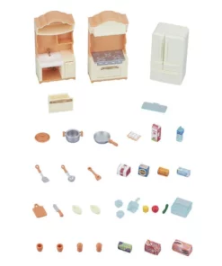 • Set de habitación completa con accesorios: mueble de cocina, mueble de fregadero, frigorífico, utensilios de cocina, verduras, hielo, etc. Total de 37 piezas.
