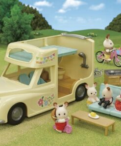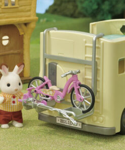 • Incluye: Vehículo con capacidad para 7 figuras; asiento convertible en cama x2; asiento para bebé; cocina; mesa; sartén; mazorca de maíz; pescado a la parrilla; plato; bicicleta de montaña para niños; bicicleta para bebés; casco; caña de pescar; cubo; pescado; prismáticos y portaequipajes trasero. (Un total de 19 piezas)
