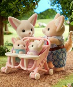 Sharon y Ronald son la mamá y papá de la Familia Zorro del Desierto. En su carrito gemelar encontrarás a Allie y Kaya. Son una familia de artistas que dejan a toda la Aldea Sylvanian asombrados con sus creaciones. Ronald, el papá, hace arte con la arena. La hija, Jasmine, acompaña esta pasión de su papá pintando sus grandes obras arquitectónicas hechas de arena. Y ese amor por el dibujo, viene de la mamá. Sharon comenzó a pintar las historias que la pequeña Jasmine imaginaba. Los bebés Allie y Kaya son muy tranquilos. Allie es poco comedora, pero muuuy dormilona. Kaya, por el contrario, tiene todavía mucho miedo a la oscuridad y le cuesta dormir por las noches.
