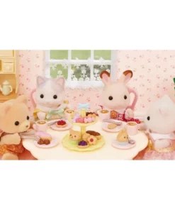 • Incluye: mesa; silla x4; taza x4; plato x4; tenedor x4; pinzas; expositor comida; caramelos x4; tartaleta x2; galletas x4; bombones x2; magdalenas x2; bollo x2; bebida x4.