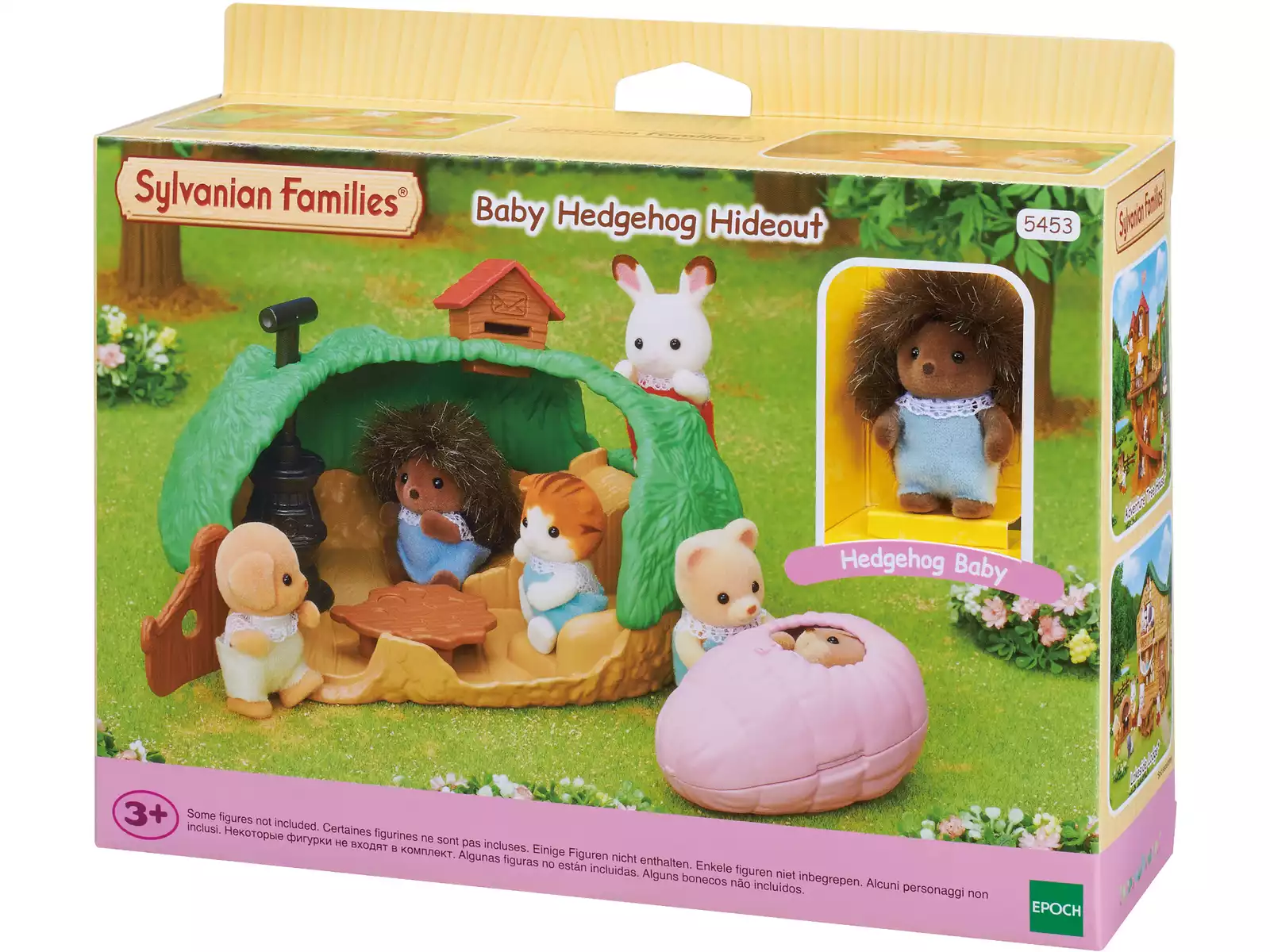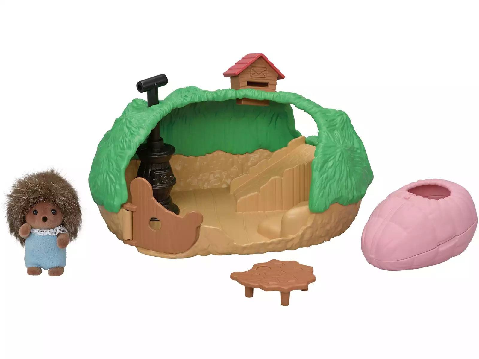 Incluye: 1 figura Bilberry bebé de la familia Erizos, 1 casita con mesita, estufa, buzón, puerta, tobogán y 1 saco de dormir para 1 figura bebé.