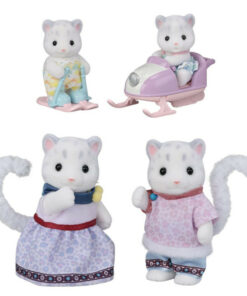 El set incluye 4 figuras (2 adultos y 2 bebés), mini moto de nieve para bebé (x1) y esquís de bebés (x1).