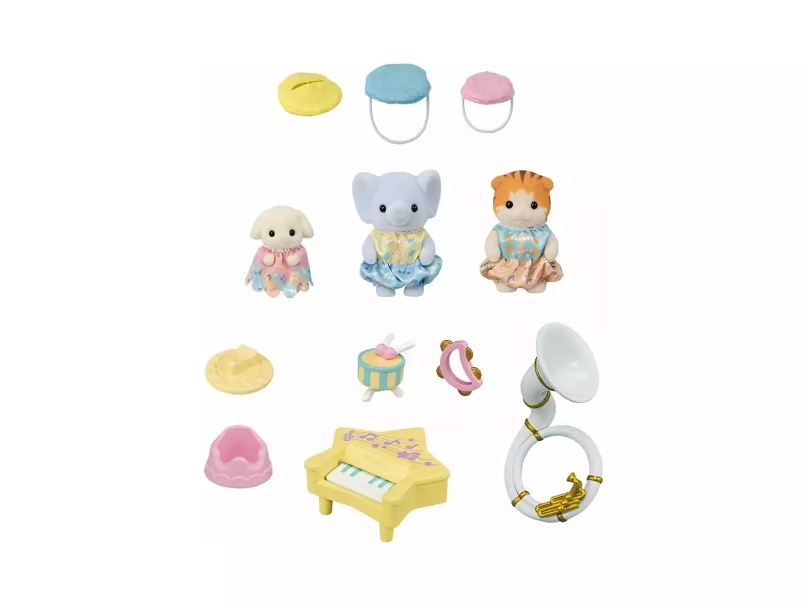 Incluye: 1 set con 1 figura Alfie Maple, 1 figura Hilton Elefante, 1 figura Rosemary Flora con 3 disfraces exclusivos, 1 piano, 1 tambor, 1 tuba, 1 pandereta y muchos más accesorios.