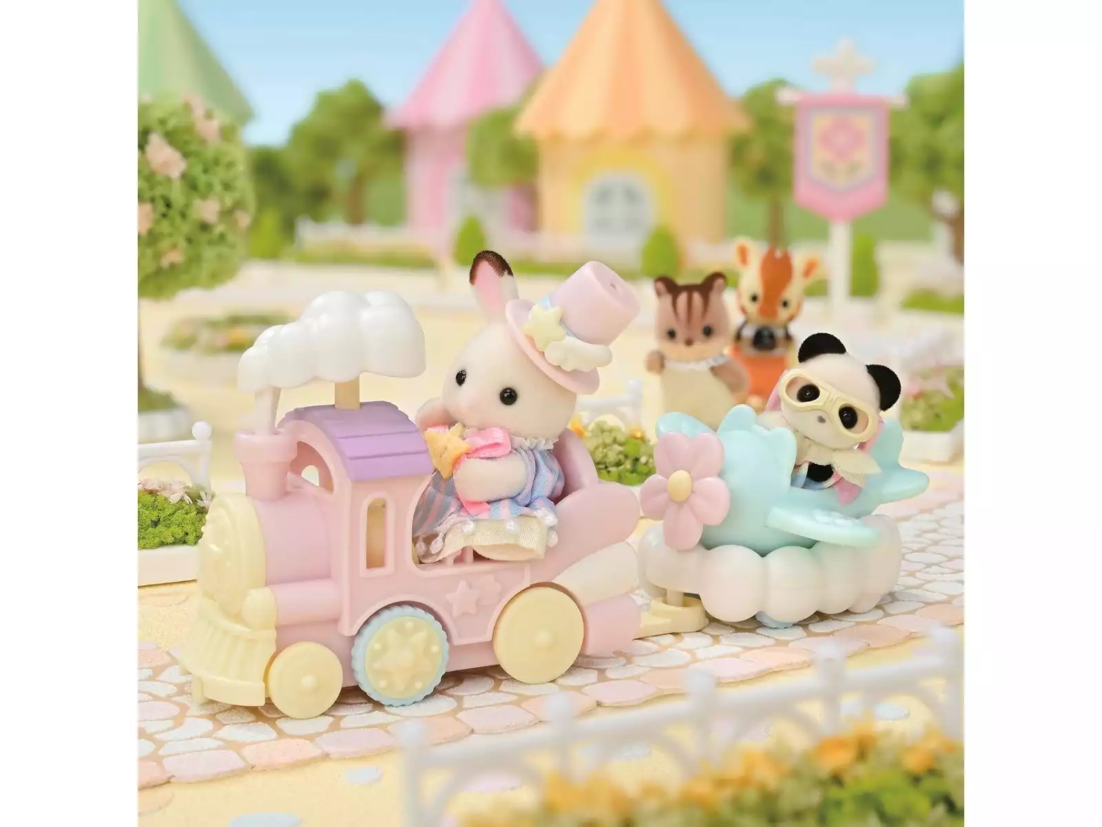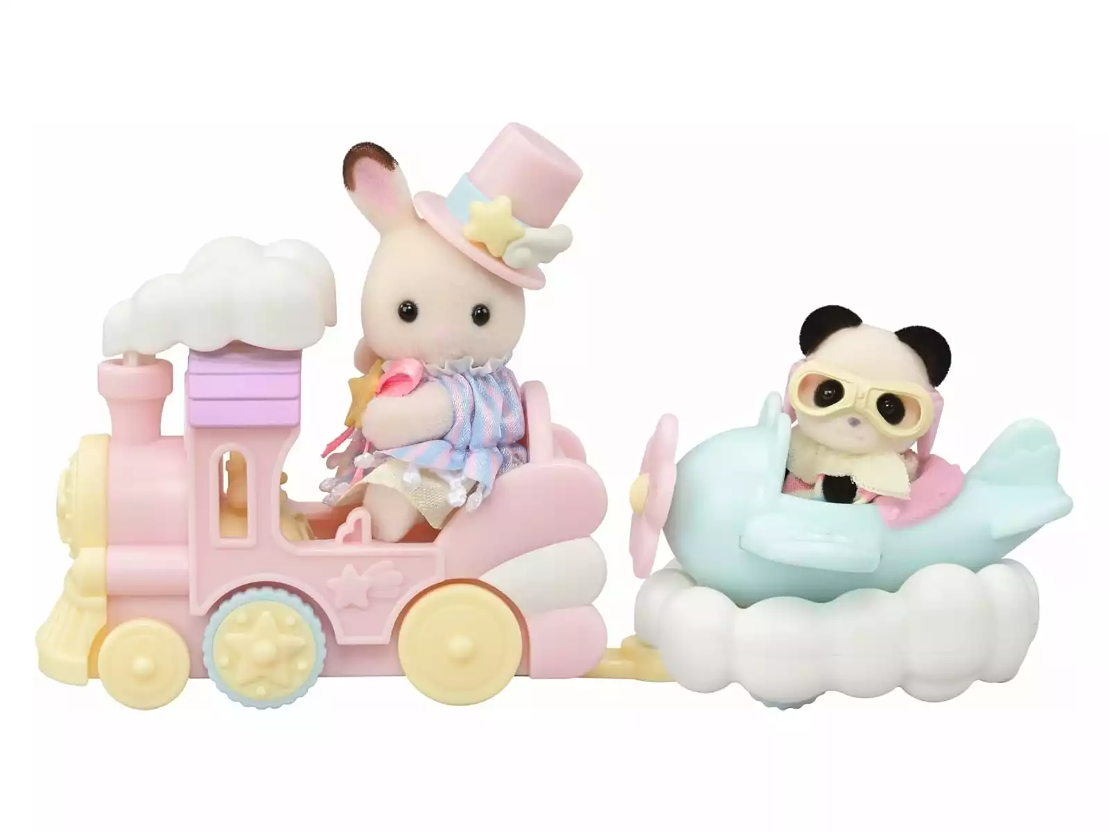 Incluye: 1 figura bebé conejito Crème con vestido multicolor, 1 figura bebé oso panda Erin con vestido rosa, 1 gorro, 1 gafas, 1 avión de juguete con espacio para una figura y 1 tren de juguete con espacio para una figura.