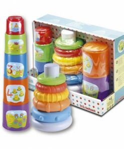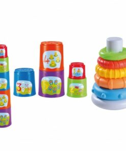 Set compuesto de cubos apilables y aros de colores con diferentes tamaños para encajar. Funciona sin pilas. Pensado para la estimulación mortiz del niño. Orientado a niños a partir de 6 meses.