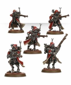 Este conjunto Adeptus Mechanicus Skitarii está dirigido a quienes practican modelismo de guerra y coleccionismo de miniaturas de Warhammer 40000. Las figuras pueden usarse como un escuadrón independiente en juegos estratégicos, además sirven como base para conversiones o personalizaciones mediante otros componentes del sistema Citadel.