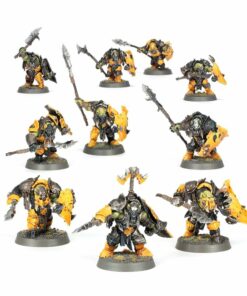El conjunto incluye 10 modelos Orruk Ardboyz, incluyendo un Ardboy Boss equipado con un choppa único, así como diversas cabezas y escudos que permiten la personalización. Además, se incluye Gorkamorka Glyph Bearer con dos variantes de glifos, ampliando las opciones tácticas y visuales. Los modelos vienen montados sobre bases redondas Citadel de 32 mm.